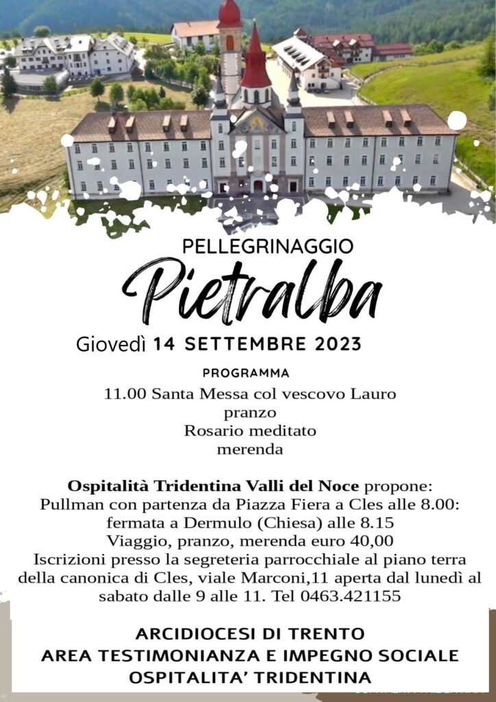 Pellegrinaggio a Pietralba Quando 14/09/2023 8:00 - 20:00 Aggiungi al calendario Download ICS Google Calendar iCalendar Office 365 Outlook Live